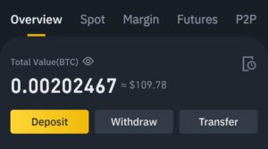 I opened an account with Binance (you can open by clicking this link) and then transferred $115 (money I can lose without thinking twice) worth of bitcoin (0.0019773 BTC) into the account from one of my wallets and left $115 in my personal wallet so I can compare returns.