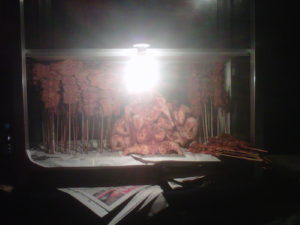 I immediately asked to see the person in charge that night, asked what it would take to handle their bbq and he said I just have to pay some money at the end of the month for the space. The next morning I went straight to main town to look for people who make suya to find who would work with me, I was linked to this young man from Jos, Mohammed and I we made a list that morning for everything we need to make suya and roast fish (list came up to about 20,000) and we went to the Slaughter (Abbatoir Market) and bought everything (we had to buy already sliced suya meat because we were late).