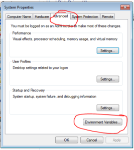 In system properties, click on the tab Advanced then Environment Variables as below: